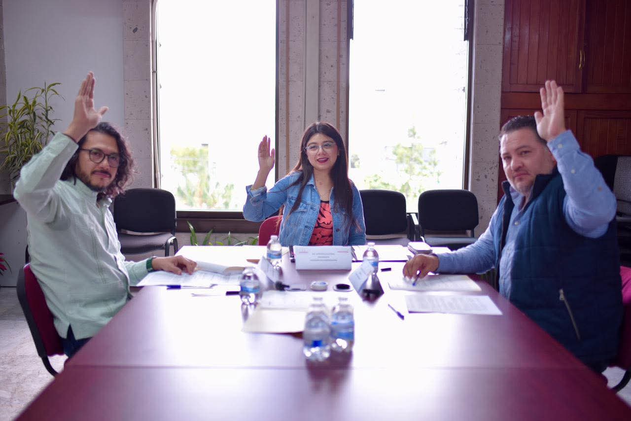 En reunión de trabajo, la diputada Dorheny García Cayetano y los legisladores Luis Vicente Aguilar Castillo y Carlos Marcelo Ruiz Sánchez, presidenta, secretario y vocal respectivamente, suscribieron el dictamen con proyecto de decreto que reforma la fracción XXIV del Artículo 39 de la Ley Orgánica del Poder Legislativo, derivado de la iniciativa presentada por la diputada Tania María Cruz Mejía el pasado 14 de noviembre en la Tercera Sesión Ordinaria de este año legislativo.