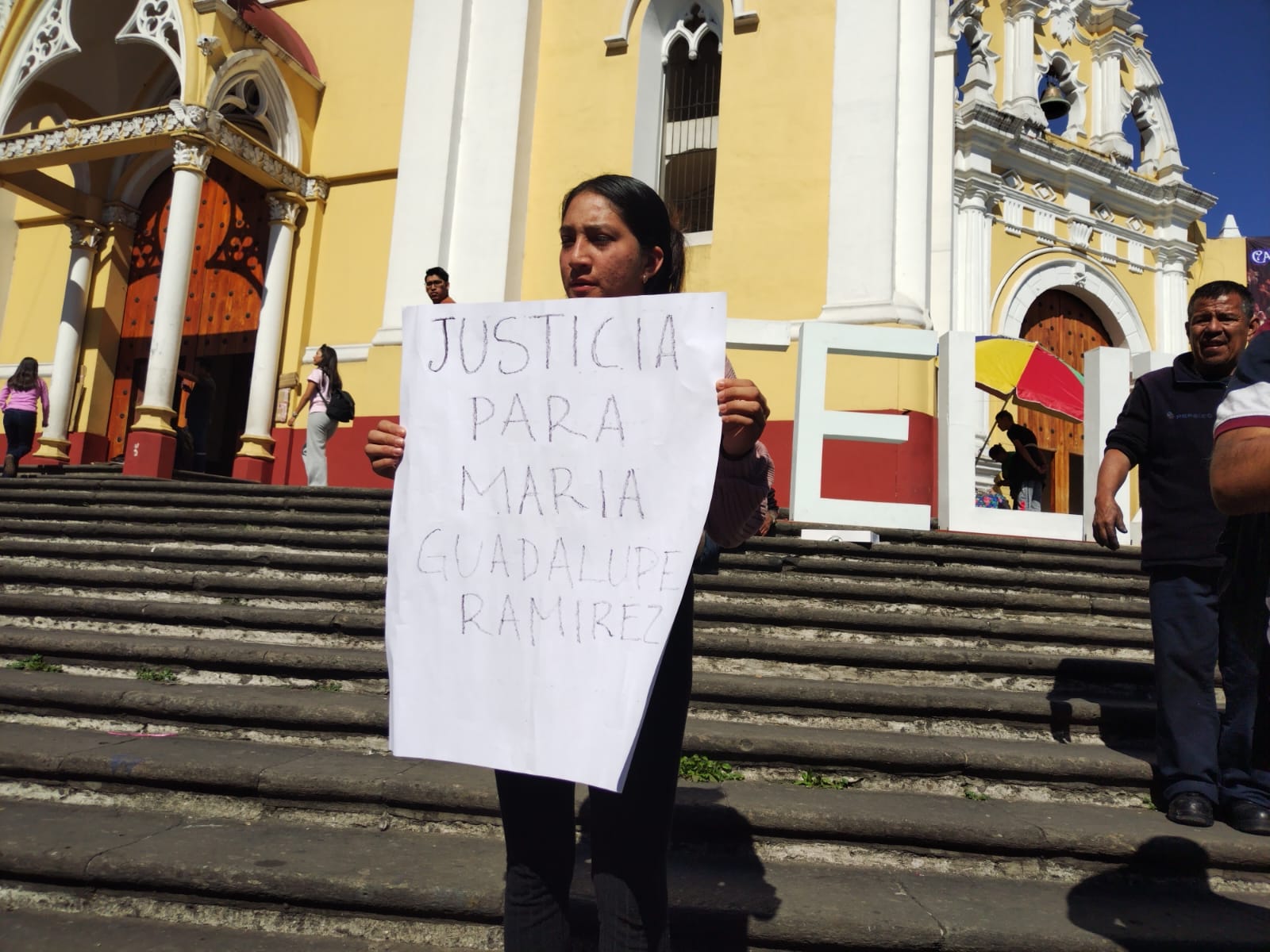 XALAPA, VER.- La mañana de este lunes, familiares de la señora María Guadalupe Ramírez Anel se manifestaron en las escalinatas de la Catedral de esta capital para exigir a las autoridades haga justicia por la agresión que fue objeto por parte de Regina Jazmín, quien le arrojó aceite hirviendo, causándole quemaduras de segundo grado en brazo izquierdo, así como en ambas piernas y pies.
