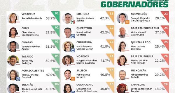 Y es que la gobernadora Rocío Nahle se ubicó en el primer lugar nacional con 53.7 por ciento de aprobación por su desempeño en estos primeros 100 días, de acuerdo a la encuesta nacional realizada por la empresa especializada Arias Consultores.