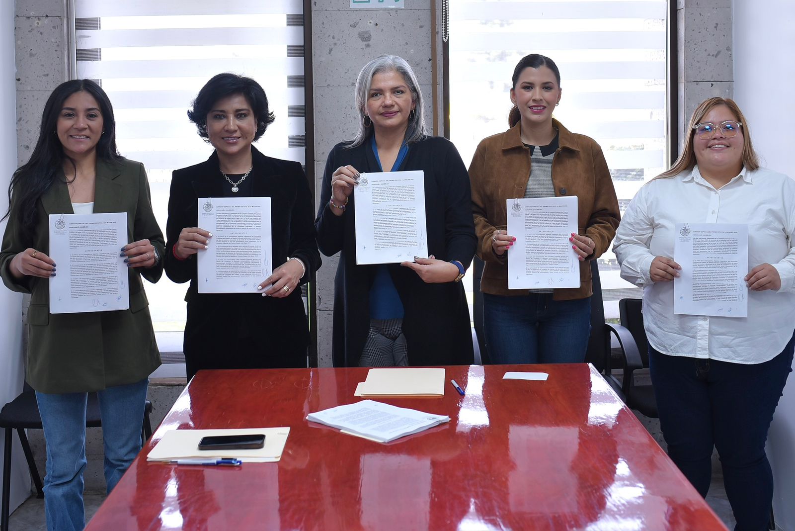 Al reunirse en oficinas del Palacio Legislativo, las diputadas Daniela Flores Barnils, presidenta, Estefanía Bastida Cuevas, secretaria, y Astrid Sánchez Moguel, Elizabeth Morales García y Luz Alicia Delfín Rodríguez, Molina, vocales, procedieron a conocer las 35 propuestas ciudadanas.