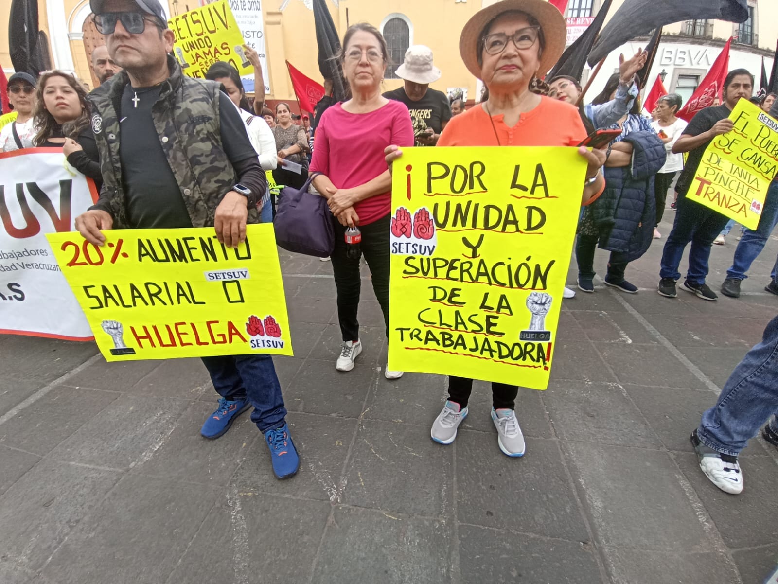 XALAPA, VER.- Integrantes del Sindicato de Trabajadores de la Universidad Veracruzana (SETSUV), se manifestaron en la plaza Lerdo para exigir a las autoridades universitarias paguen la homologación salarial a los trabajadores que sus percepciones están por debajo del salario mínimo.