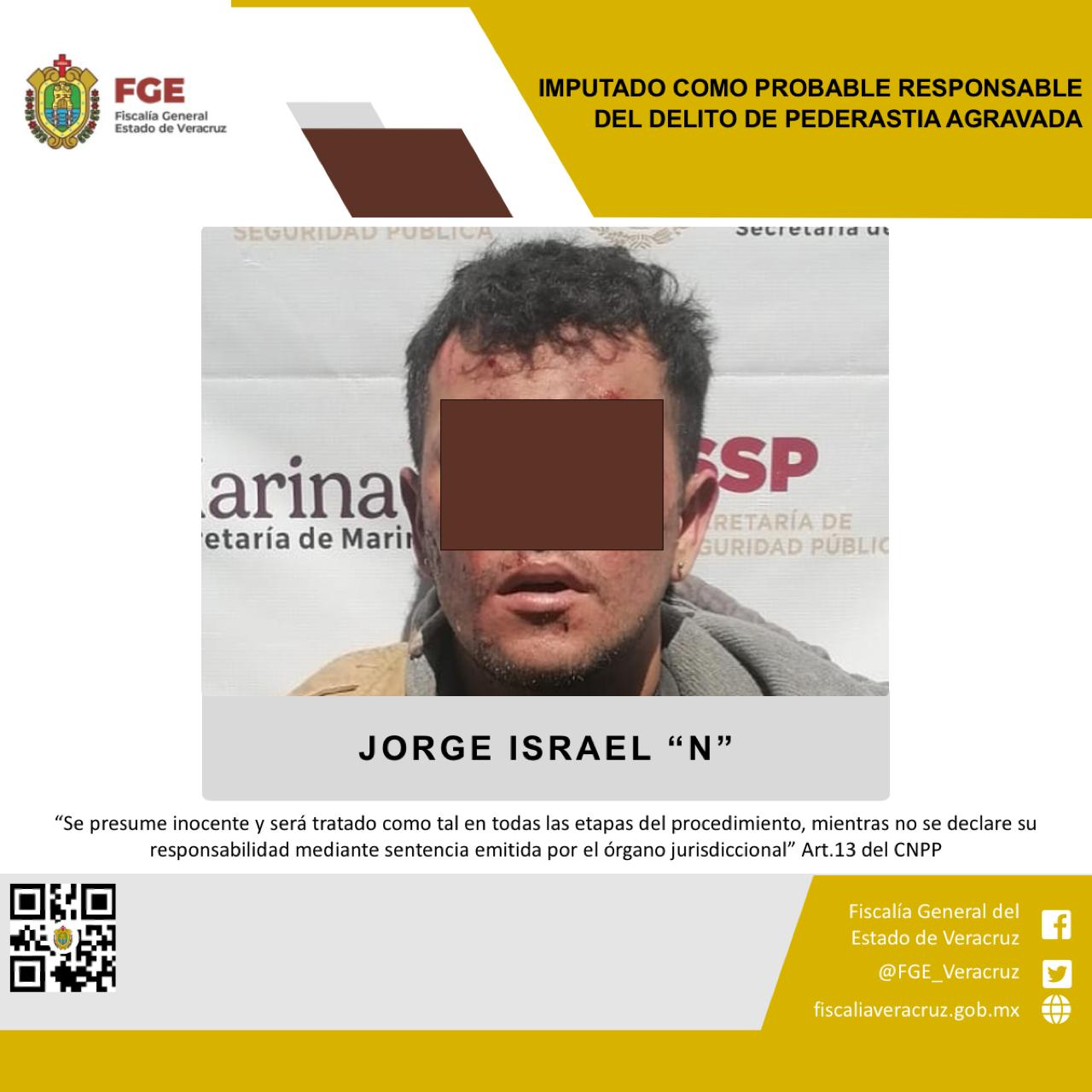Xalapa, Ver., 11 de marzo 2025.- La Fiscalía General del Estado, a través de la Fiscalía Especializada para la Investigación de Delitos de Violencia contra la Familia, Mujeres, Niñas y Niños y Trata de Personas realizó imputación en contra de Jorge Israel “N” como probable responsable del delito de pederastia agravada cometido en agravio de una adolescente de identidad resguardada.