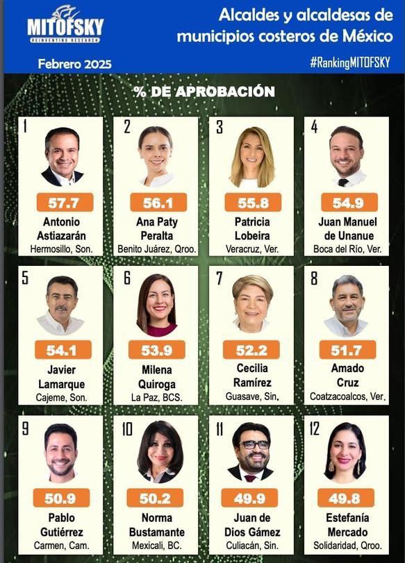 Unánue en el top ten de alcaldes de municipios costeros con mayor aprobación