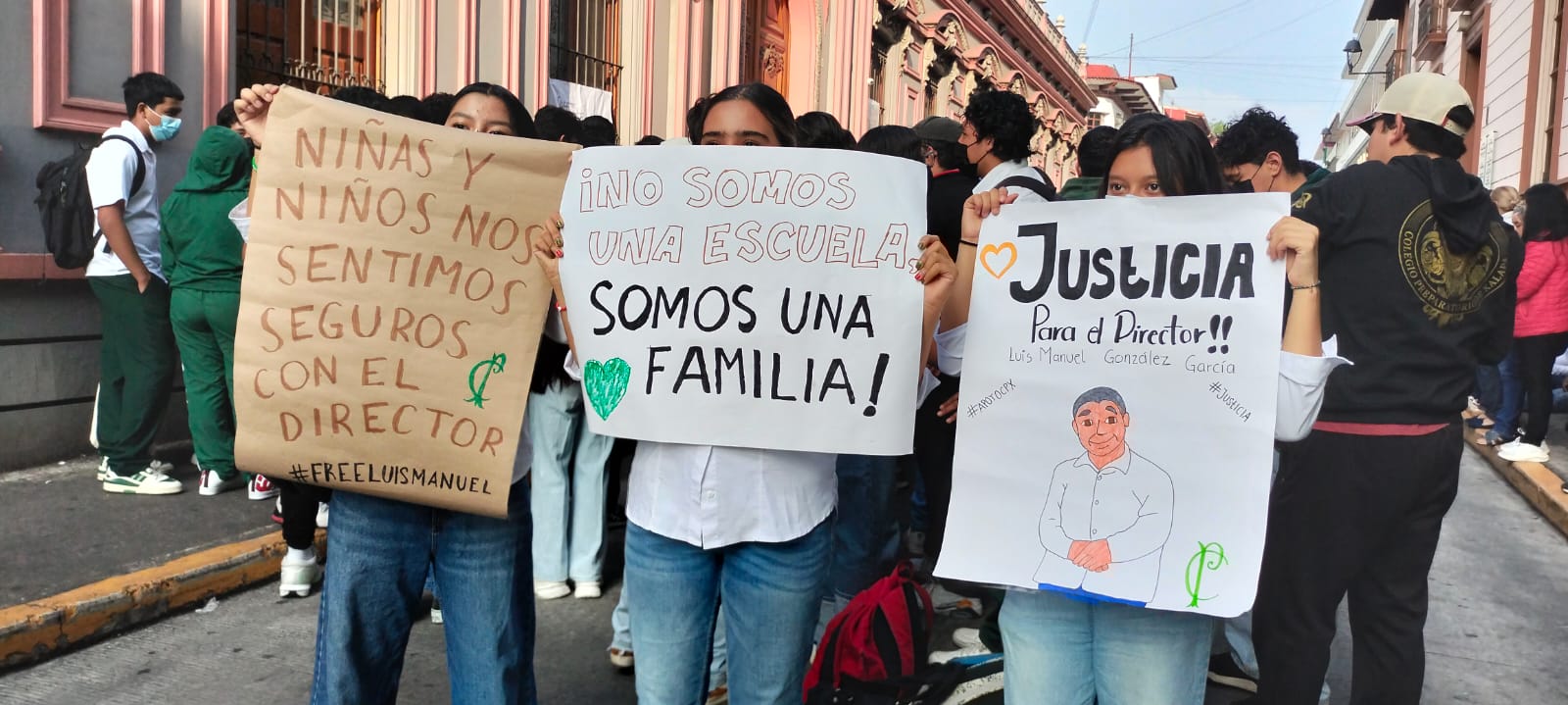 La mañana de este miércoles, un grupo de padres de familia junto con docentes bloquearon la calle Enriquez, frente a palacio de gobierno, para exigir se frene la investigación en contra del director Luis Manuel González García y se mantenga en el cargo.
