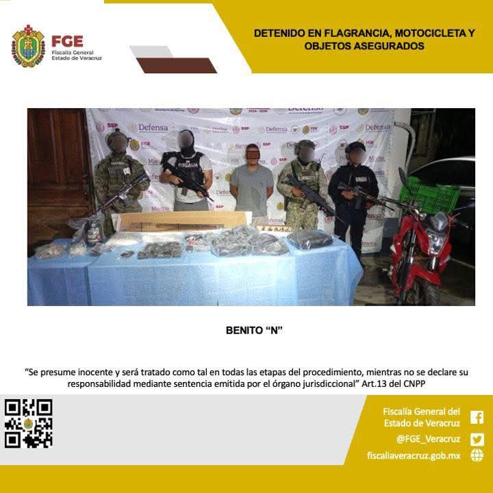 Respetando sus derechos humanos y el debido proceso, el detenido fue presentado ante el fiscal correspondiente de la Fiscalía Regional Tuxpan para que defina su situación jurídica.