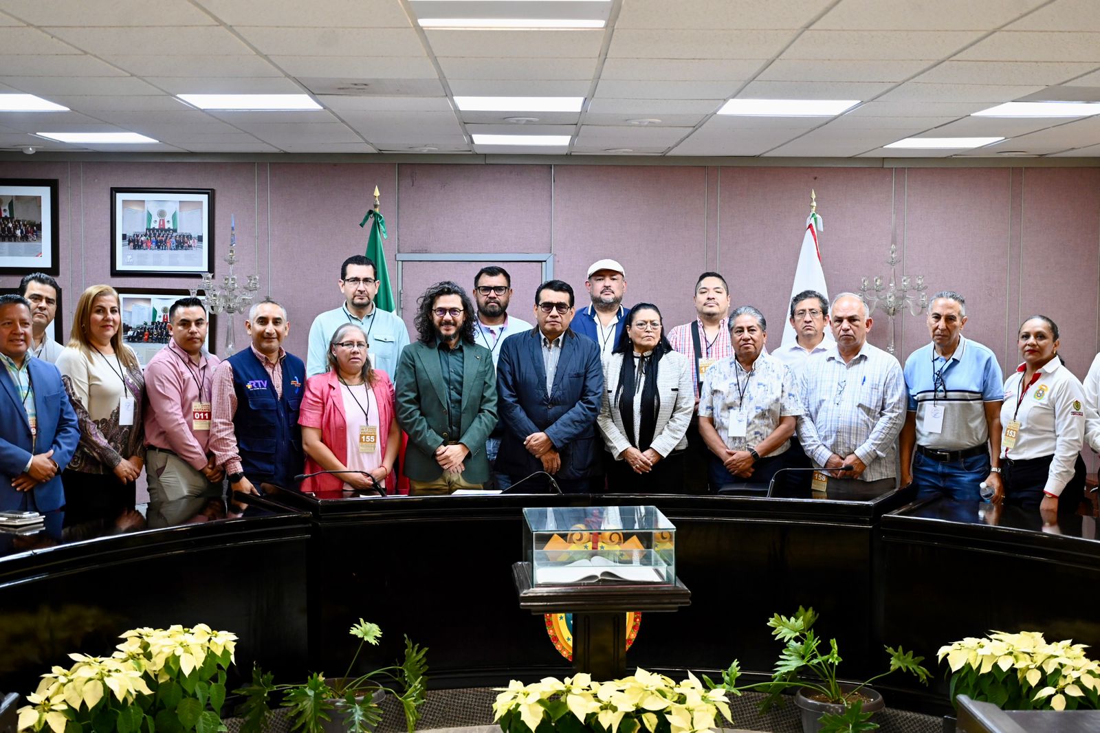 Asistieron a esta reunión, los Secretarios General, Domingo Bahena Corbalá, y de Servicios Legislativos, Sebastián Clemente Morales, ambos del Congreso del Estado; personal administrativo, asesores y líderes sindícales.