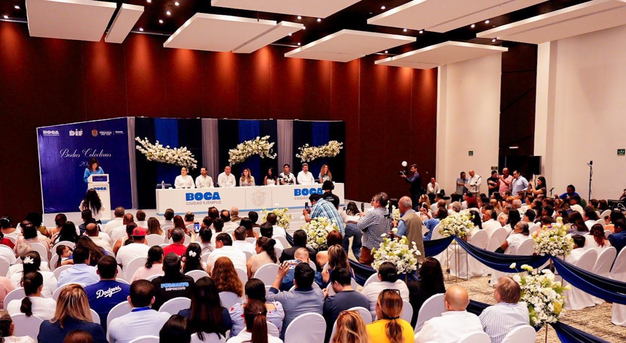 La alcaldesa de Boca del Río, Maryjose Gamboa Torales, y la presidenta del DIF municipal, María Paula Hakim Gamboa, encabezaron la ceremonia de Bodas Colectivas 2026, en la que 97 parejas formalizaron su unión civil, gracias al trabajo coordinado entre el Sistema DIF Municipal, el Registro Civil y el Ayuntamiento boqueño.