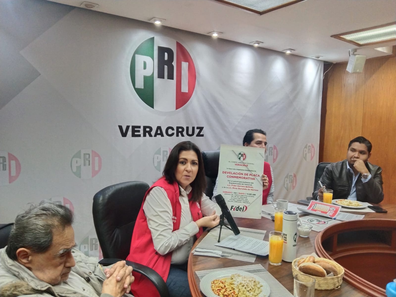 XALAPA, VER.- La secretaria general del PRI, Luz Carolina Gudiño Corro, informó que este próximo 2 de mayo se develará una placa en honor al exgobernador Fidel Herrera Beltrán y su esposa Rosa Borunda.